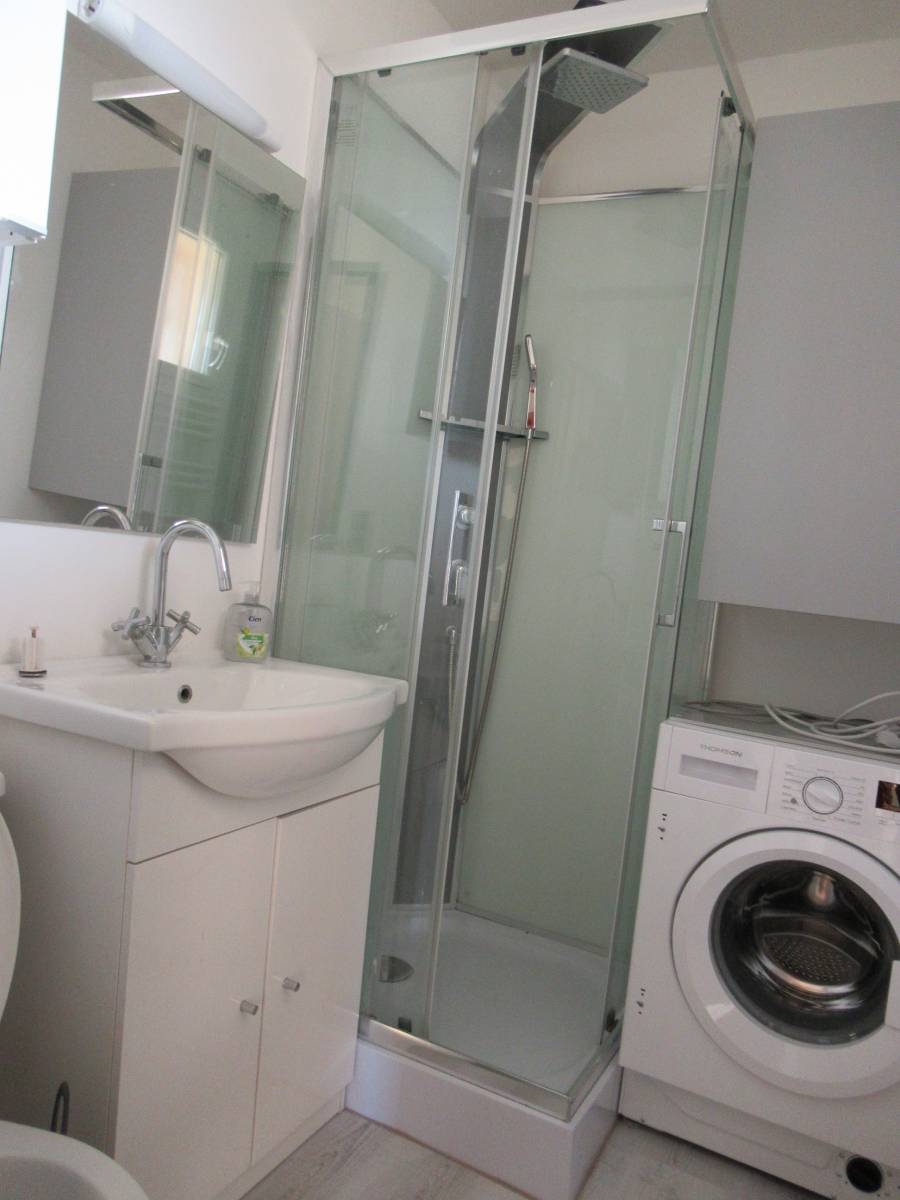 Cet appartement comprend une chambre séparée équipée de rangements, un séjour lumineux avec une cuisine ouverte aménagée et partiellement équipée, une salle d'eau avec douche, lavabo et WC, ainsi qu’un dégagement à l’entrée, doté d’un placard de rangement et d’un couchage d’appoint pratique.