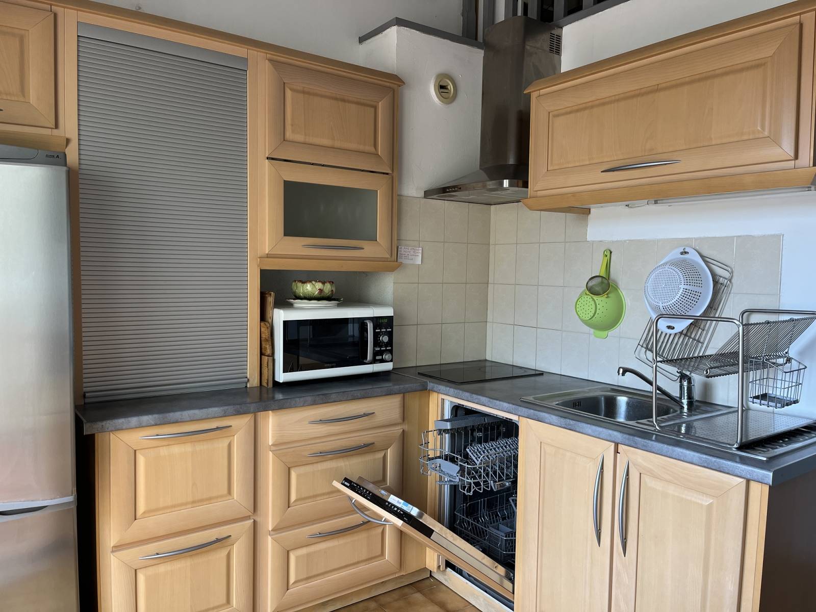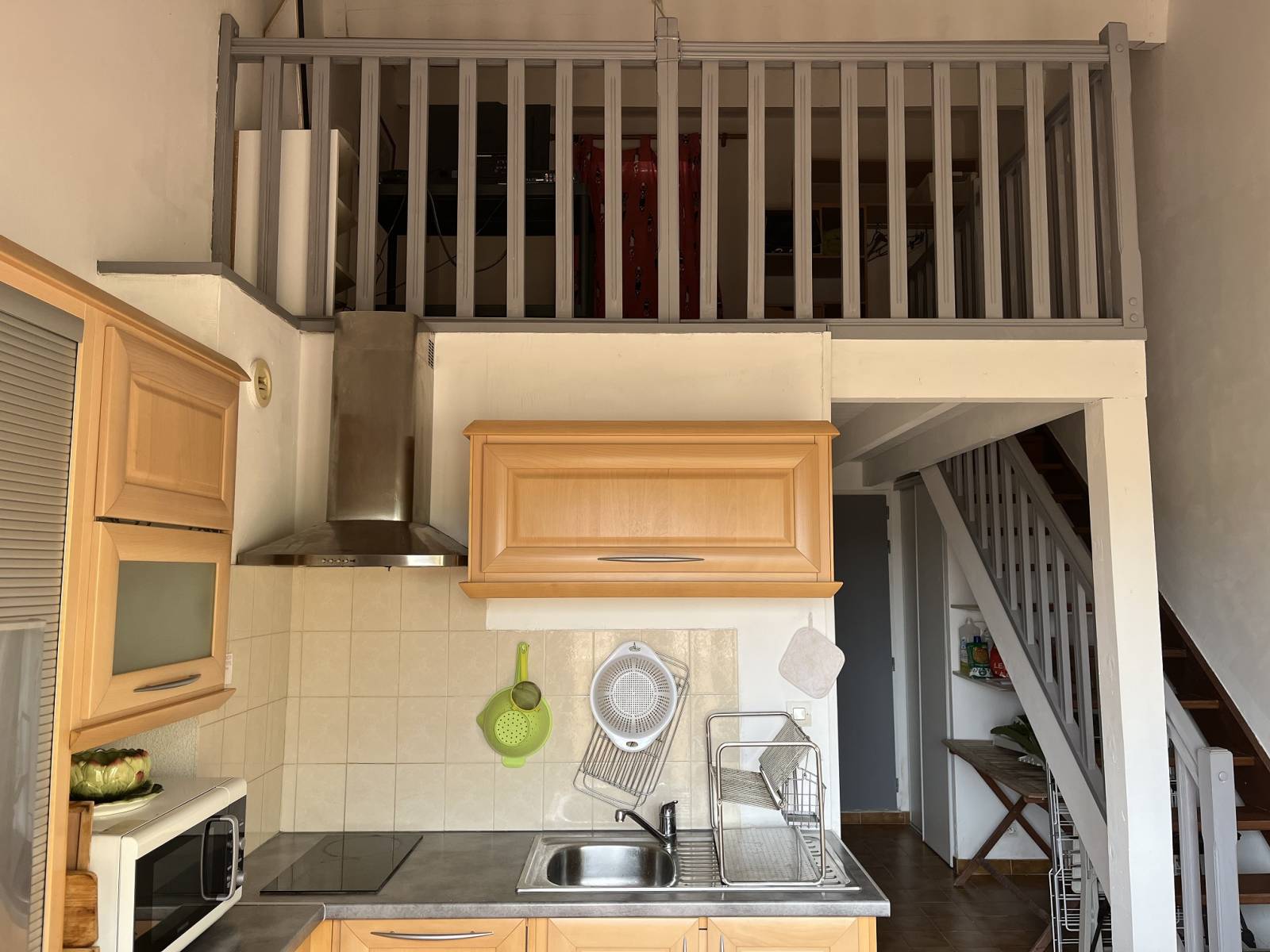 La cuisine ouverte est entièrement équipée, comprenant notamment un réfrigérateur et un lave vaisselle, et s’intègre parfaitement à l’espace de vie. Une mezzanine vient compléter le bien en proposant une surface supplémentaire, pouvant être aménagée selon vos besoins (chambre d'appoint, bureau, ou espace TV)