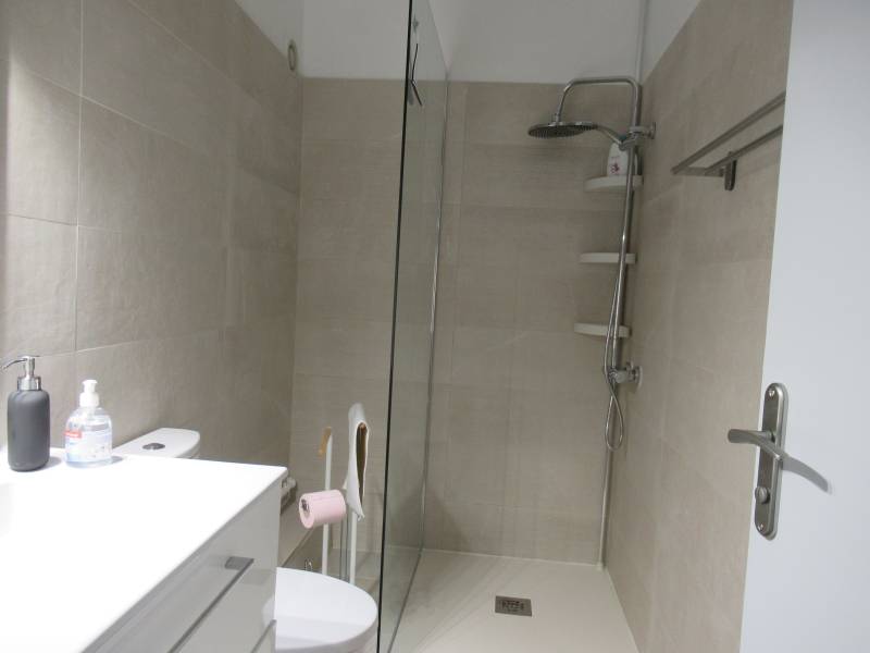 Une chambre permet d'accueillir un lit en 140, une salle d'eau parfaitement rénovée avec sa douche italienne, meuble vasque et WC.