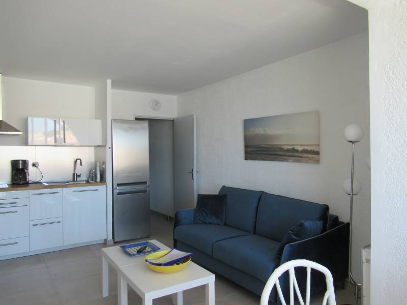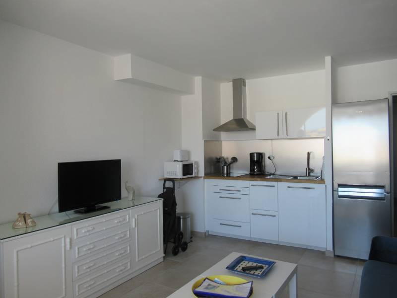 Vous aurez un bel espace de vie constitué d'un séjour, avec sa cuisine ouverte équipée, un espace repas donnant une vue magnifique sur le Port de Sausset les Pins.