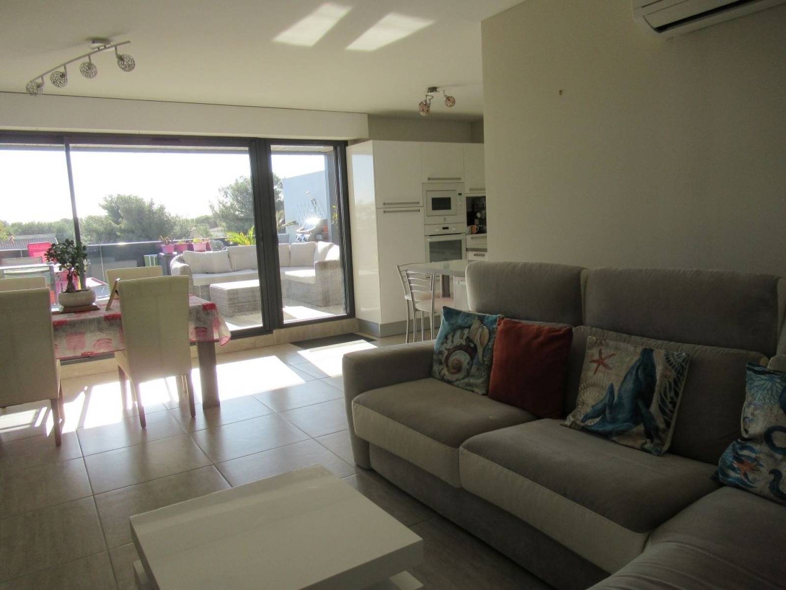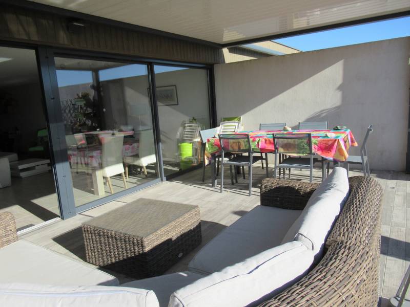 Son grand séjour lumineux et sa cuisine ouverte équipée donnent accès à une grande terrasse de 43m², dotée d'une pergola bioclimatique.