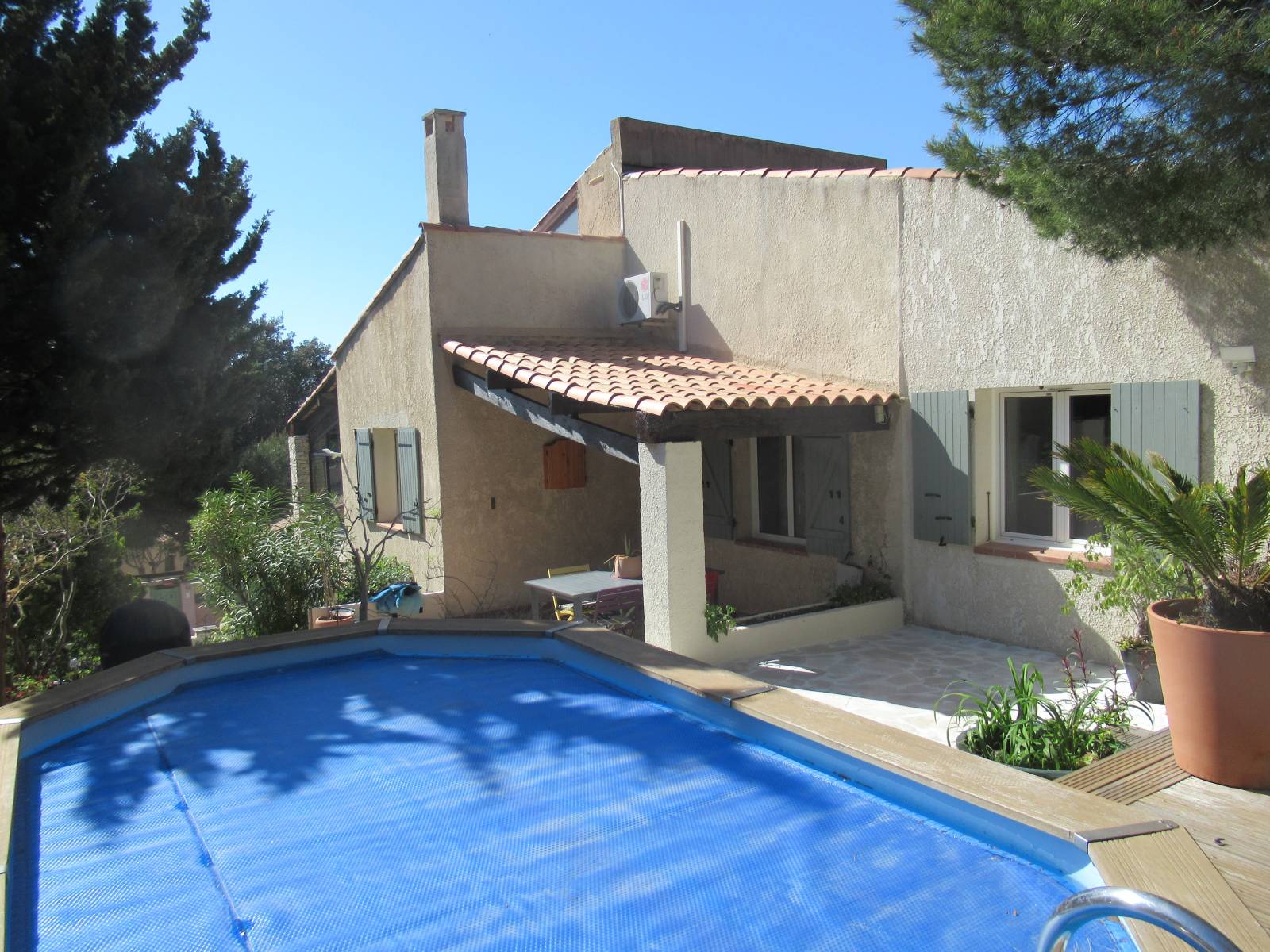 Sur une parcelle de 487 m², profitez d'un extérieur soigné avec piscine, terrasse ensoleillée, grand garage/atelier et local à vélos.