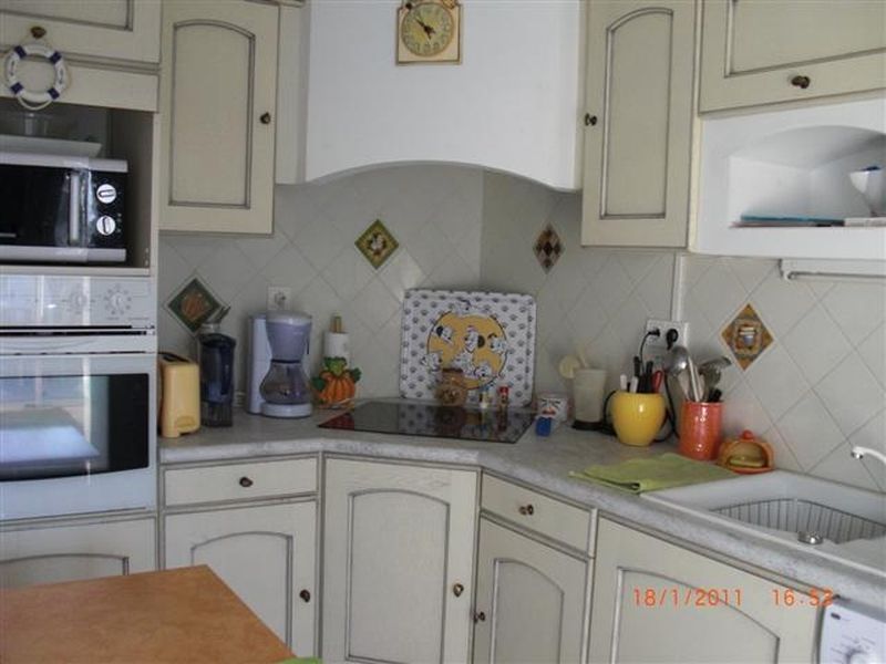 Le bien dispose d'un séjour en L, une cuisine équipée, 3 chambres, 1 SDB, 2 WC, véranda, une belle terrasse de 60 m2 avec la vue mer, une cave, et 2 places de parking. L'année de construction est 1985.