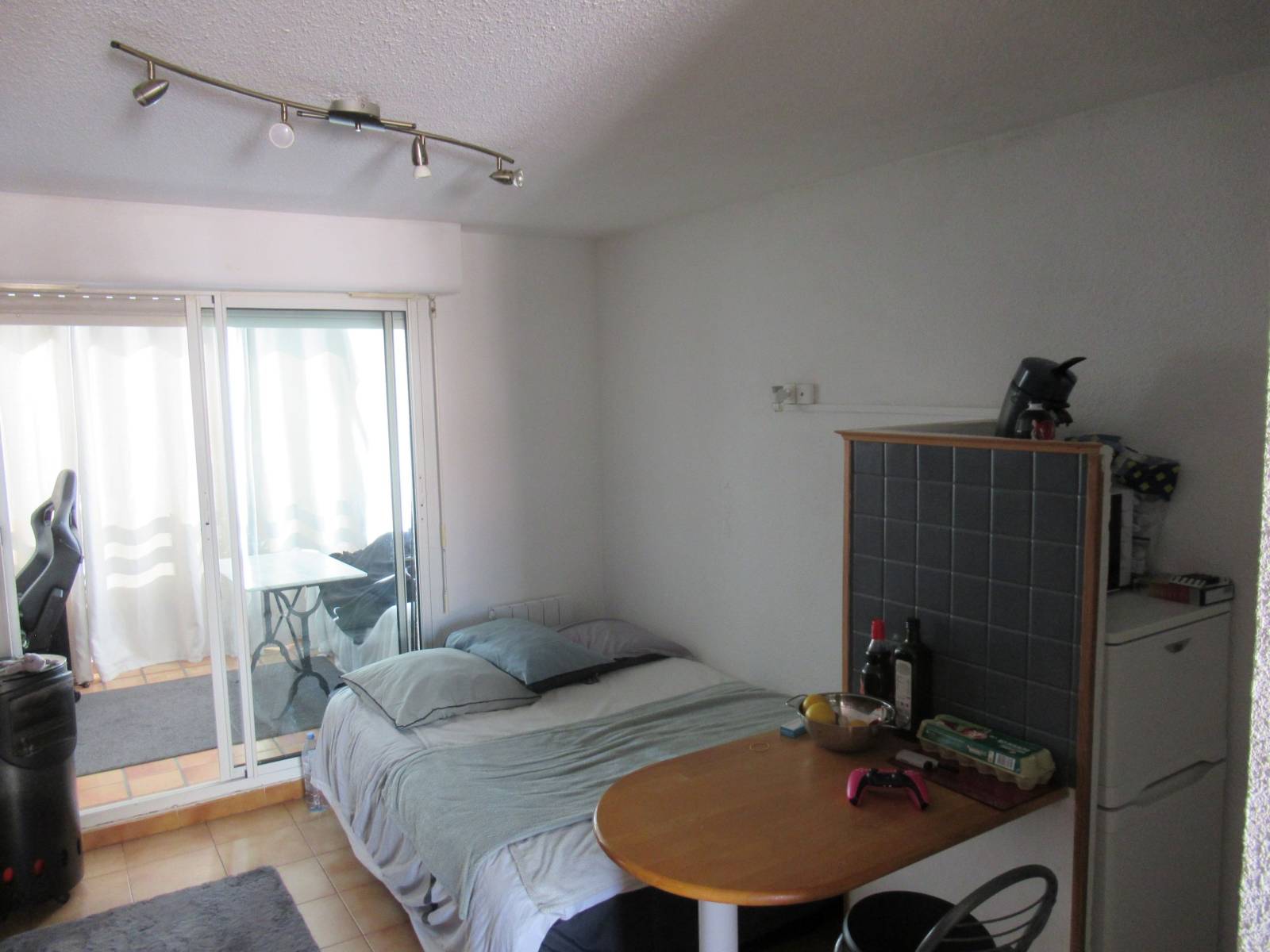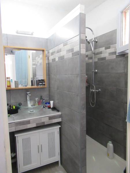 Une salle d'eau complète rénovée avec goût comprenant un douche, un lavabo, un WC (le tout en parfait état). Un séjour spacieux avec coin cuisine équipée, donnant sur une loggia lumineuse prolongeant l'espace vie.