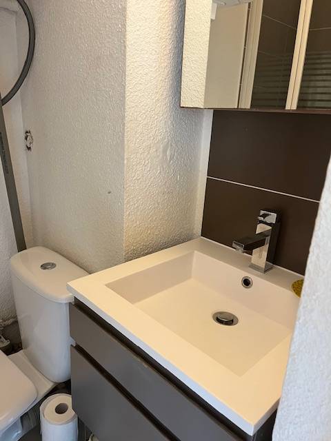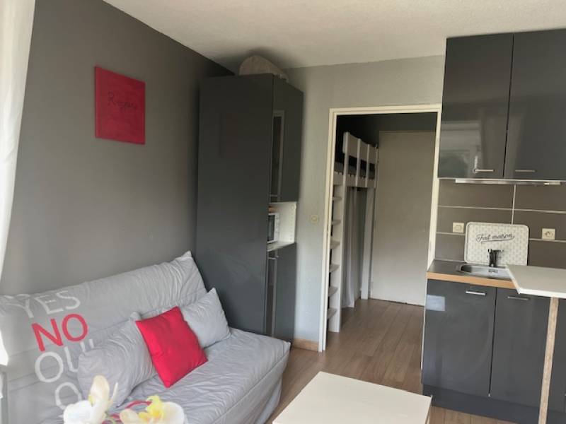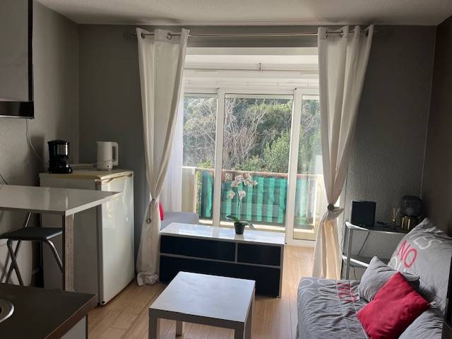 Situé au premier étage, au bout d'une coursive garantissant une tranquillité absolue sans passage devant vos fenêtres, ce studio est un véritable cocon. La résidence propose un accès à une piscine collective pour les journées d'été et deux terrains de tennis pour les plus sportifs.