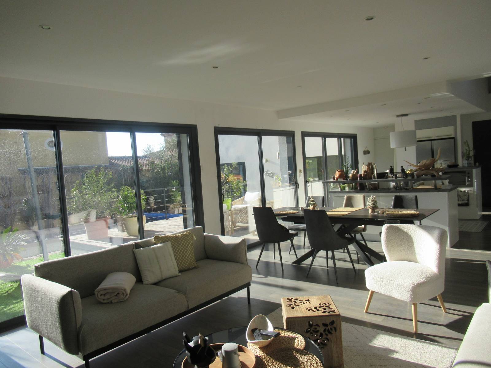 Vous serez séduits par cette maison individuelle comprenant un vaste séjour baigné de lumière grâce à ces grandes baies vitrées donnant sur une belle terrasse Sud et une piscine en traditionnel.